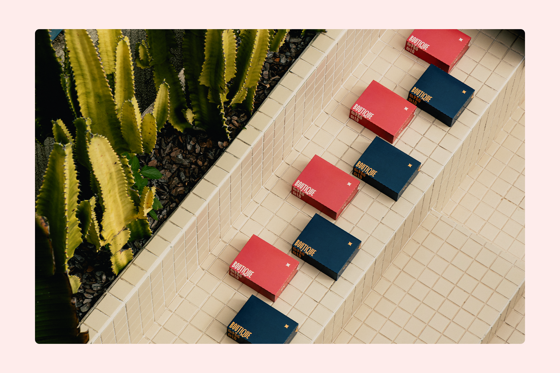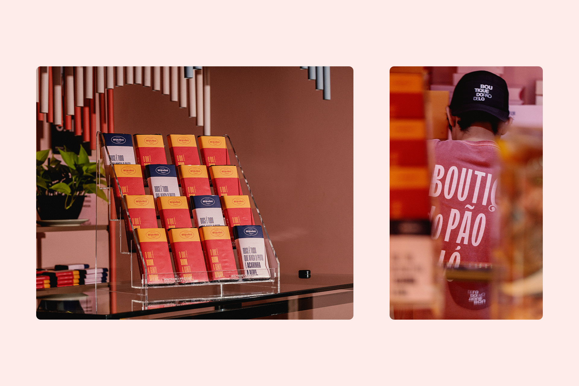Com toda essa base consolidada, o escritório de arquitetura Linha Catarina foi responsável por traduzir o universo visual da marca em espaços físicos. Os projetos variam entre pequenos quiosques e lojas de maior porte, todos concebidos para expressar com fidelidade a nova fase da Boutique do Pão de Ló no ponto de venda.