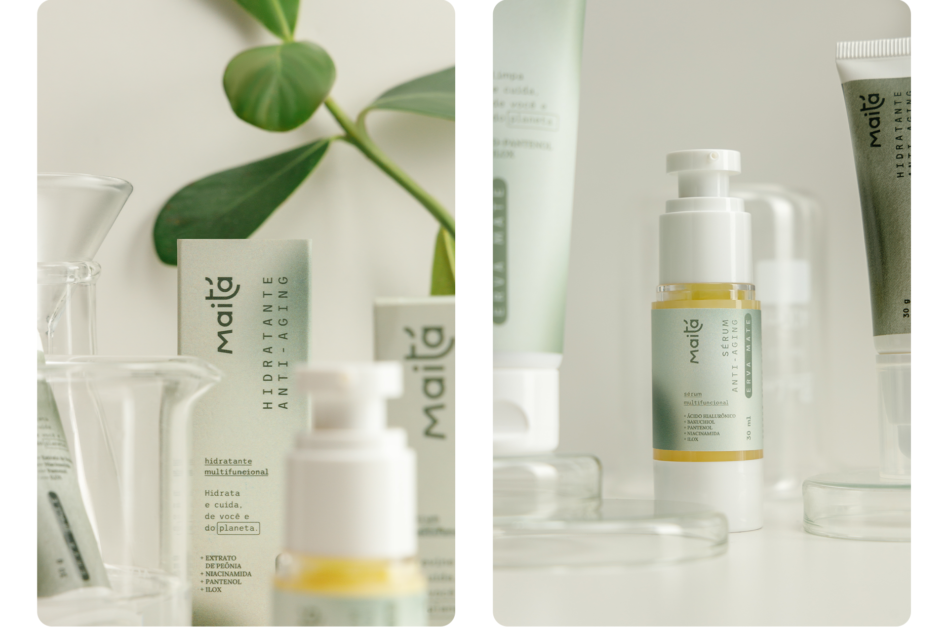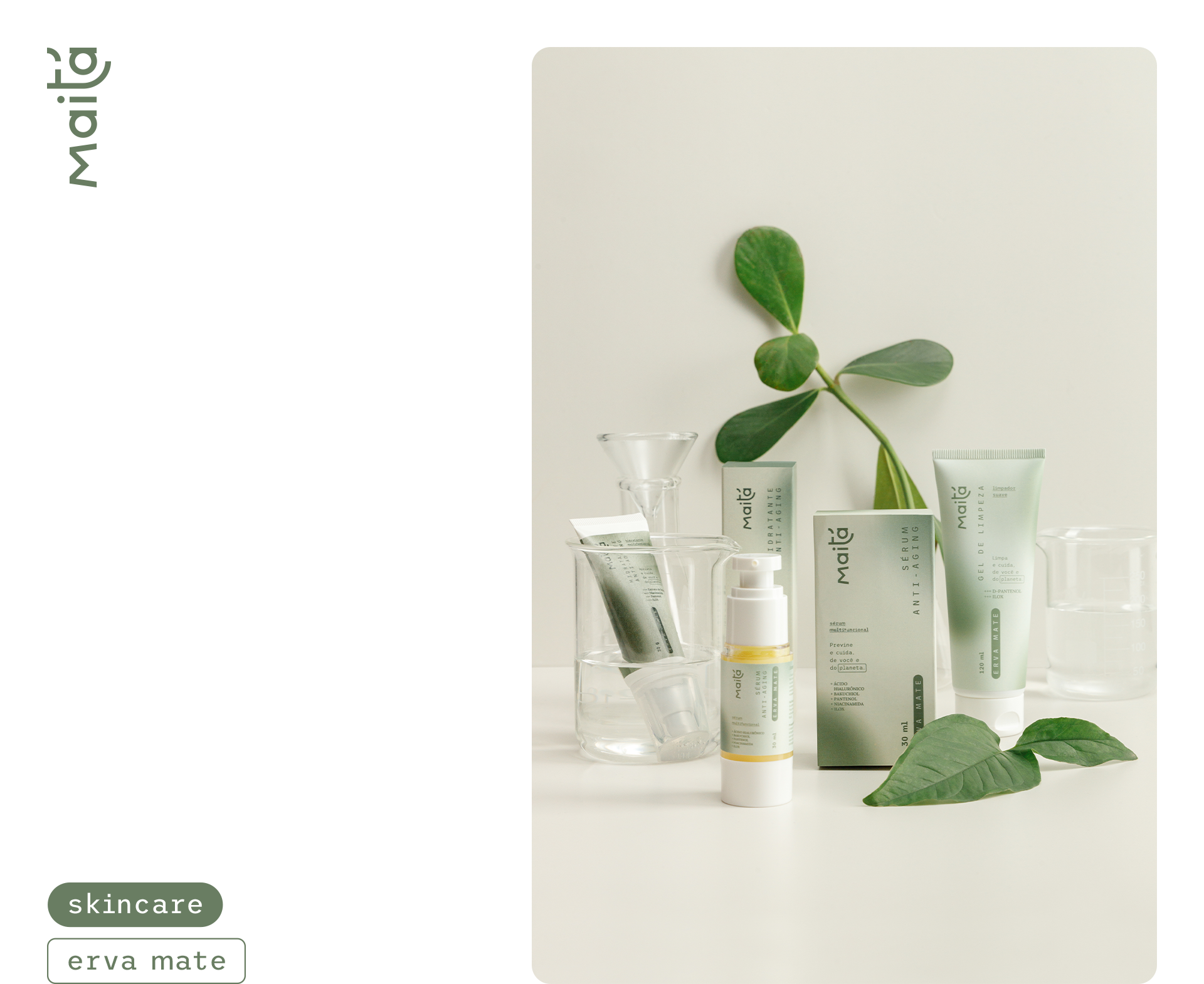 As part of the brand's universe, we were invited by Maitá Cosméticos to develop the new line of skincare products based on yerba mate, marking the company's debut in intensive treatments and which already has several SKUs launched.