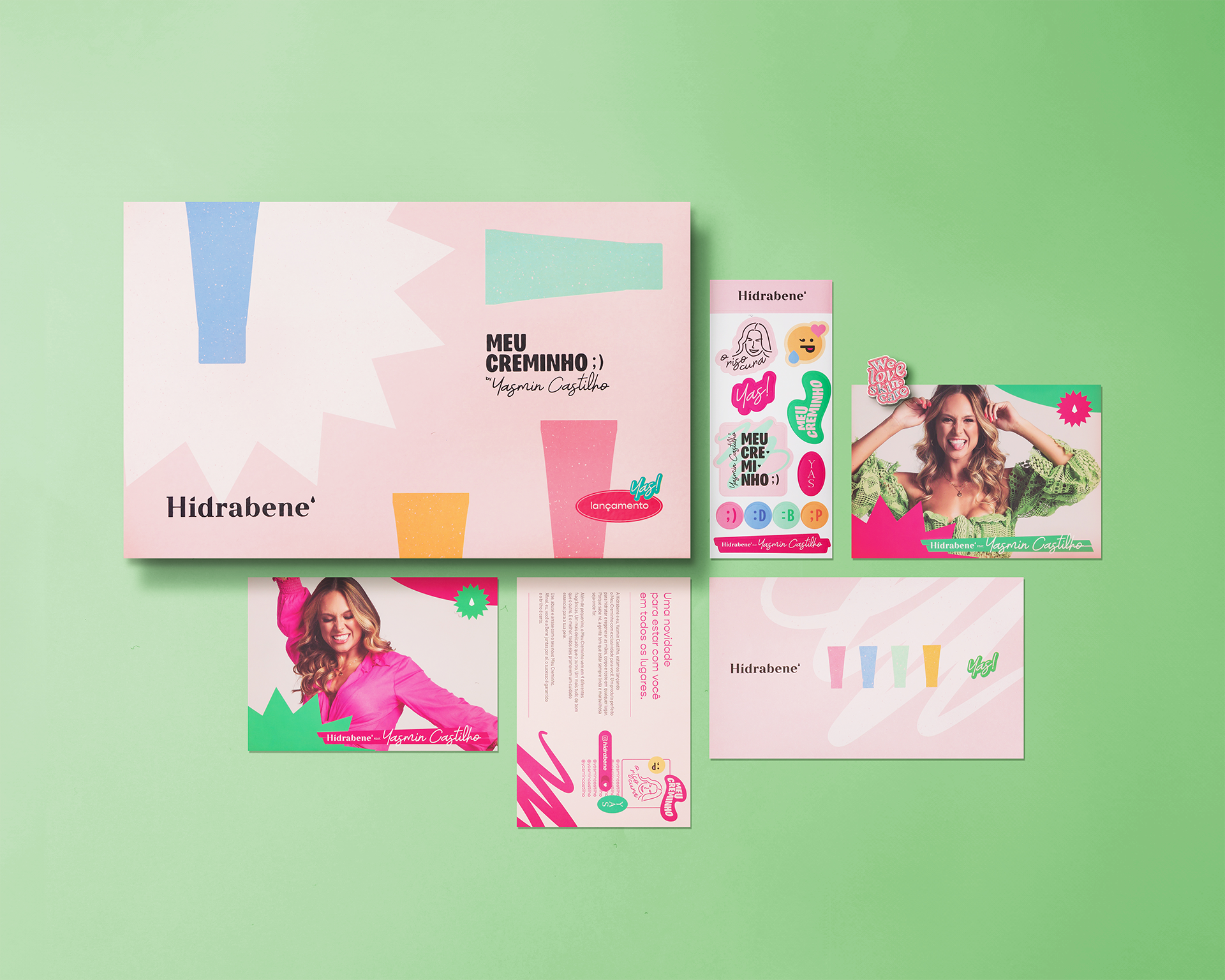 da identidade já utilizada pela marca Hidrabene, o projeto engloba um presskit com diversos impressos,